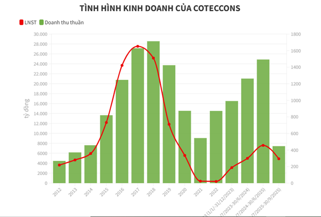 Công ty Cổ phần Xây dựng Coteccons (HoSE: CTD) công bố báo cáo tài chính quý I niên độ 2026 (1/7/2025 - 30/9/2025 - tương tự quý III/2025) với kết quả ấn tượng: doanh thu đạt 7.452 tỷ đồng, tăng 56,6% so với cùng kỳ; lợi nhuận sau thuế gần 295 tỷ đồng - gấp hơn 3 lần và là mức cao nhất trong 27 quý, tương đương gần 7 năm.