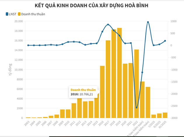 Điểm sáng của Hòa Bình là khoản doanh thu tài chính 229,5 tỷ đồng, tăng hơn 1.100%, chủ yếu đến từ khoản lãi chậm thanh toán theo phán quyết của tòa án. Nhờ đó, lợi nhuận quý III/2025 của doanh nghiệp ghi nhận cao gấp nhiều lần so với mức nền thấp của năm 2024.