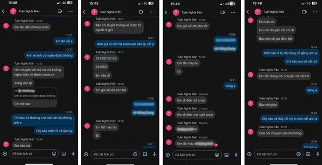 | Một số đoạn tin nhắn các đối tượng trao đổi với nạn nhân. |